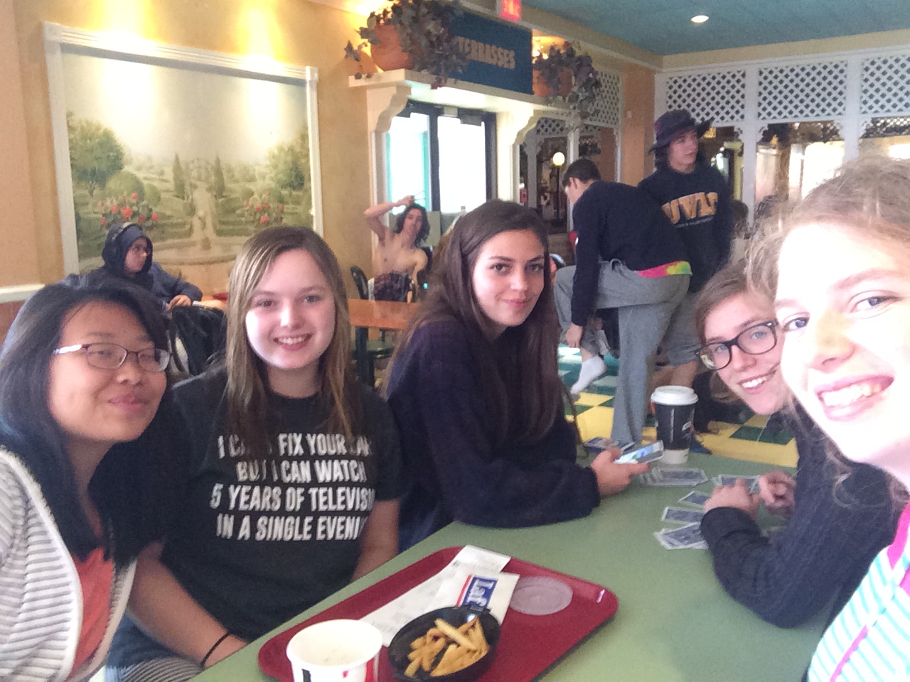 On Wednesday, I went back to the city with some friends to buy tickets for Festival d’été (more on that soon). Following that, we all took a trip to the big mall with an amusement park inside it. Tickets were fairly expensive, so I only rode the rollercoaster, but that was really fun. Since we had five hours at the mall, my friends and I decided to do some shopping, or really some trying on and not buying. We made it into a game in which we chose crazy outfits for each other to model.