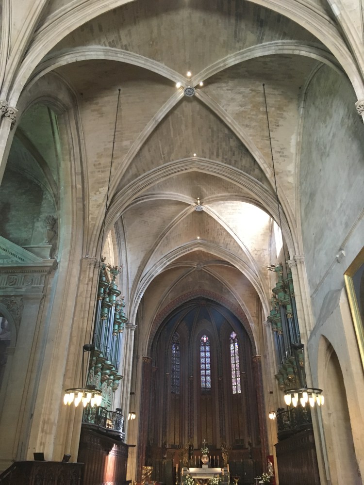 Gordes is one of the hill towns, and one of the biggest towns in the region. Backed up against the Vaucluse mountains, it commands a spectacular view of the Lubéron. Most spectacular to me, however, was a Romanesque, early Gothic church built around the 11th century. Though very plain on the outside, the interior has colorful paint all along the walls with framed paintings and carvings added in later centuries. It’s a distinct contrast to many of the Renaissance, Baroque, or even High Gothic churches in Europe because of the simpler design and bright colors. Exploring the city was a lot of fun, and I’m really glad I had a chance to go.