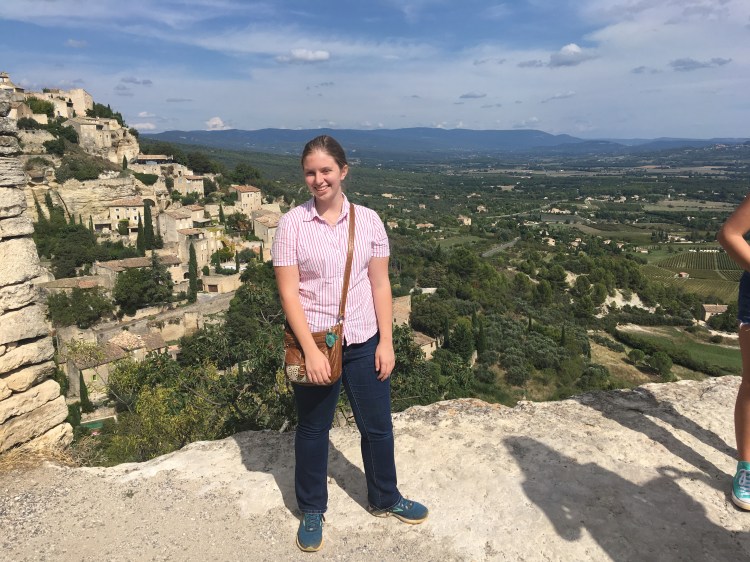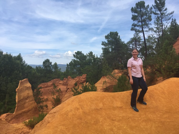 Roussillon and Gordes are both located in the Lubéron region of Provence (a region within a region because that’s not confusing at all). Known for hill towns, vineyards, and spectacular lighting, any town in the Lubéron is probably beautiful. Roussillon, however, has another draw – ocher. The red rocks of the city were mined for centuries for their color which was used for paint. The mining industry is now modernized, and the main business of the city is tourism. Visitors can buy their own local ocher paints or just hike through the rocks, which look a lot like Mars. My study abroad program also furnished a lunch for us at a fancy restaurant with a view of the red cliffs and deliciously fresh provençal foods and a very rich chocolate cake for dessert.