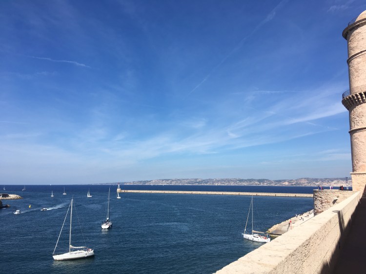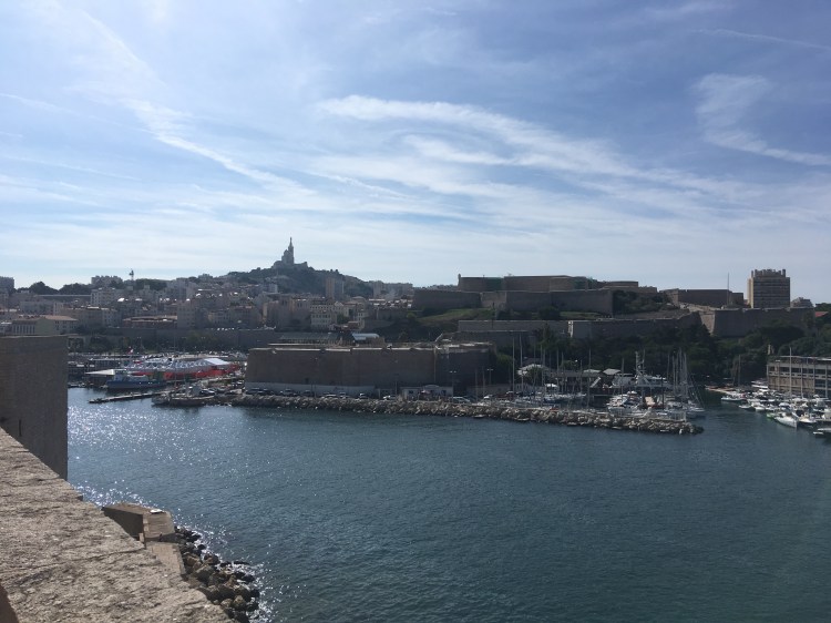 Finally, I spent today in Marseille, since it’s only a two euro trip for the whole day. The main attraction is, of course, the Vieux Port (Old port) where the Greeks first started to build their settlement around 600BC. This natural harbor is mostly home to the boats of locals these days as the bigger cruise and transport ships can’t really line up in it. At both ends though, there are forts. I started off my day on the western side with the Fort Saint-Jean, which was built in the Middle Ages and manned even through the Second World War. From the top of the fort, there is now a bridge connected to the Musée des civilisations de l’Europe et de la Méditerranée. The building has a really cool exterior with a pattern that reminded me of kelp. It made for some cool pictures walking from exhibit to exhibit and also is a neat way to let in natural lighting.