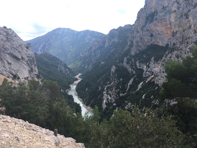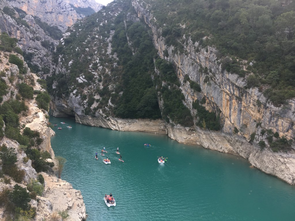 The big trip of the week was to Gorges du Verdon in the Provençal Alps. The morning started with a trip to a little town – Vinson sur Verdon – which has a nice little market on Sundays where those on the trip could purchase ingredients for a picnic since there are no restaurants in the gorge. Our next stop was the lake – Lac de Sainte Croix – where people can rent paddle boats to travel into the gorge. The lake is actually man-made as a result of a dam built in the 1970s, and it has since become a fun place for camping, hiking, and swimming. Since I didn’t really want wet jeans though and had brought a book anyway, I spent a pleasant hour and a half reading on the shore of the lake and eating my quiche and tarte tatin. Before leaving I hiked around a bit to see more of the lake which really is stunning.