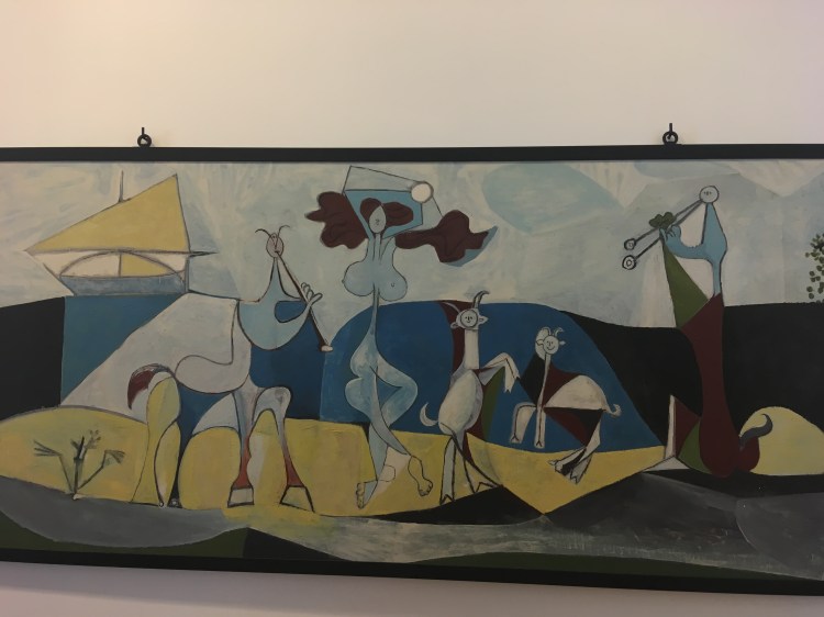Saturday was an art history trip to see some Picasso works along with other contemporary art. We started off in the Roman city of Nîmes, most famous for the Pont du Gard. The contemporary art museum is just across the street from the Roman temple – the Maison Carée that inspired Jefferson in building Monticello and several other buildings in Virginia. The museum’s exhibit focused focused on Picasso’s political works of the 1930s – the Spanish civil war and start of WWII. Across the hall was also an exhibit of contemporary political works dealing with the refugee crisis. It was a fascinating comparison and a nice selection of works. The city itself was also lovely, and I loved as always seeing the Roman city incorporated into the modern. Following Nîmes, we went to Avignon for some contemporary art at the Collection Lambert which I really enjoyed.