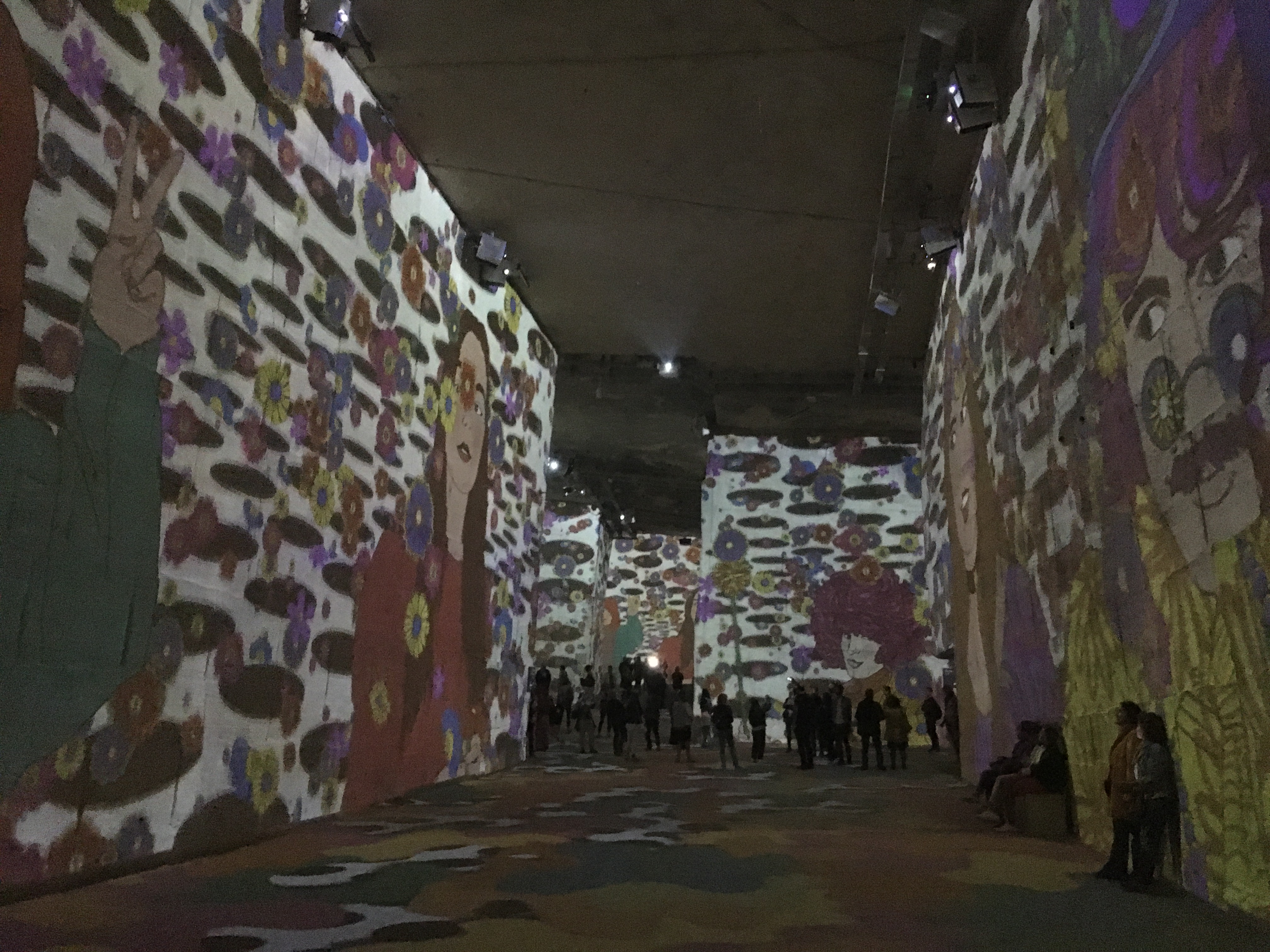 The Flower Power one, for example, opens by making the pillars into city streets with 60s music playing. Pop art literally “pops” into existence. The Picasso one features works of Velazquez and Goya paired with salsa music along with various selections of Picasso works matched with beachy music or, for Guernica, some drums and violins that were a bit terrifying but also made Guernica my favorite part of the show. In addition to the music for that one, there was in the video fog billowing up over the walls, and out of the fog the monstrous faces of the painting would appear until it eventually revealed the whole thing. Keep in mind, similar images were appearing on all the walls, so it was a bit like being surrounded by these monsters. After the painting faded away, there was a moment of blackness then images of a bombed out Spanish village and newspaper headlines. It was phenomenal, and really very difficult to describe. It was definitely the highlight of the trip.