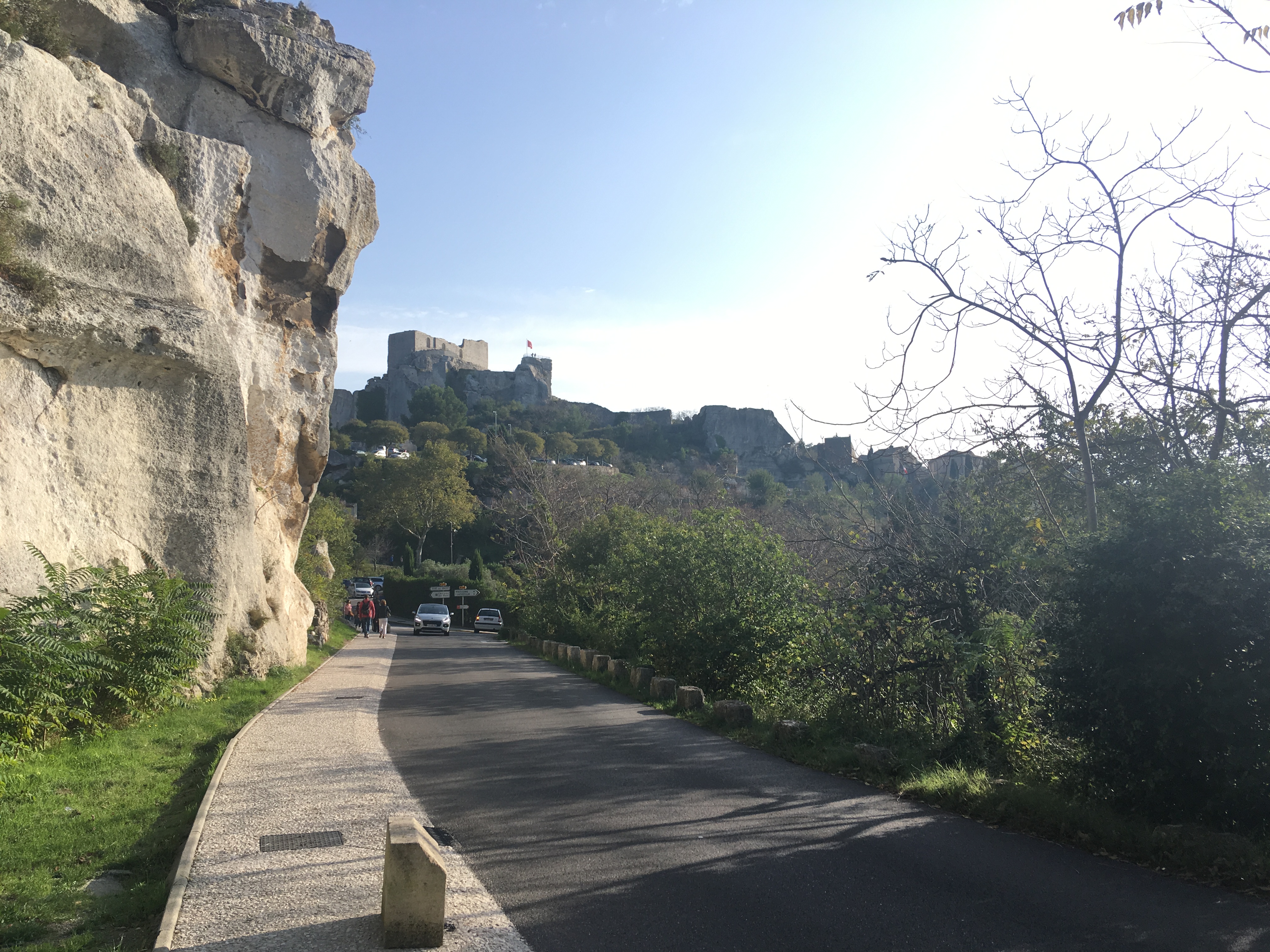 After a decadent lunch, we drove into Les Alpilles – the little Alps. Tucked into these mountains is what has been called France’s most beautiful village – Les Baux de Provence. The town is just a tiny little collection of villages on top of a mountain, but it’s lovely to walk through and they also have an immersive art exhibit that doesn’t require all the stairs. What is showing in the exhibit changes every so many months, but I was able to see Flower Power and Picasso and the Spanish Masters. The exhibit is set up inside the mountain; there’s a roof and columns to hold everything up. Essentially, you walk through a door into the cave where the art is projected all around you with music playing from high up on the walls. It was an incredible experience, and while I walked all around the cave, I also spent most of the show (40 minutes total) just watching.