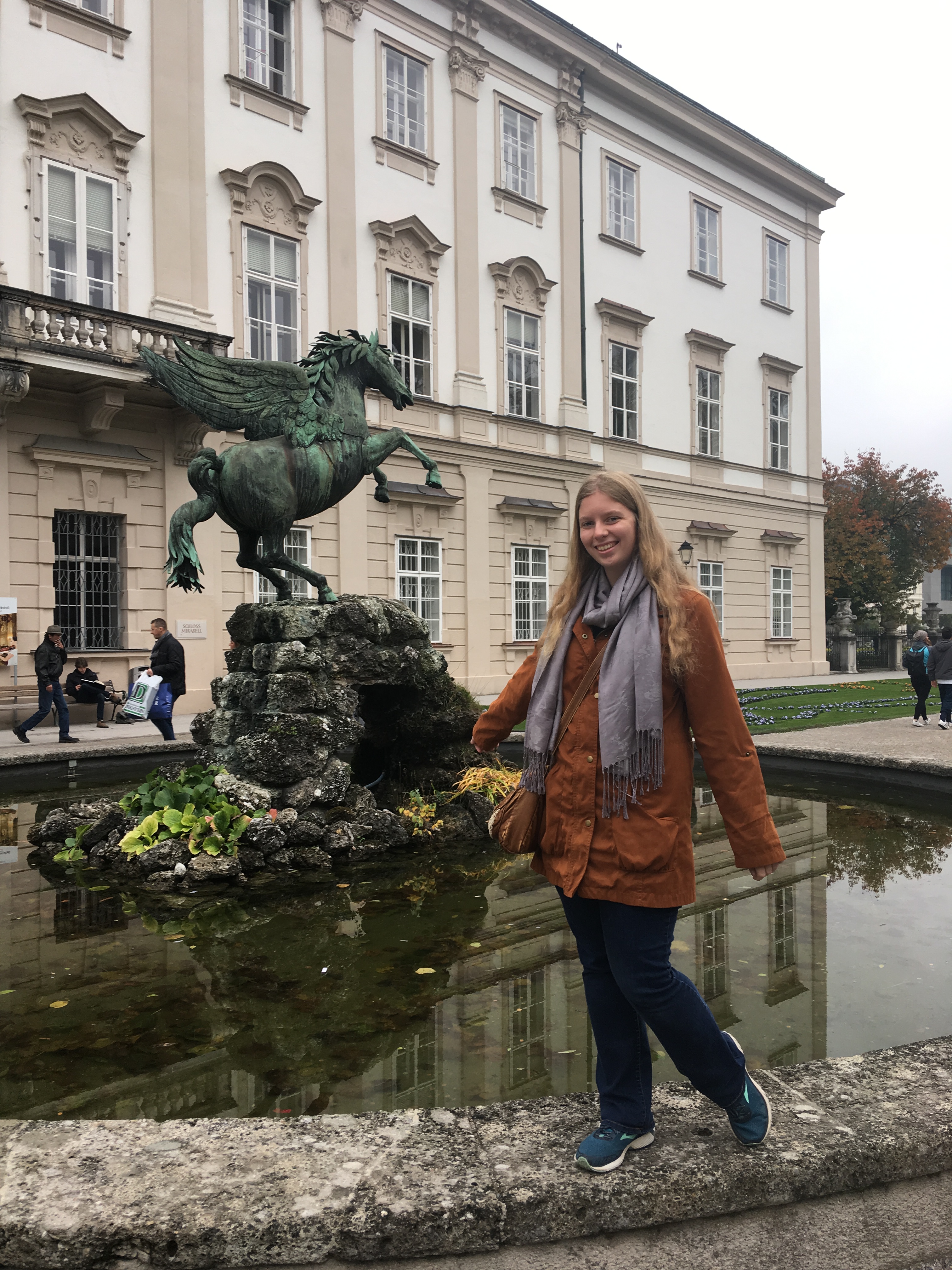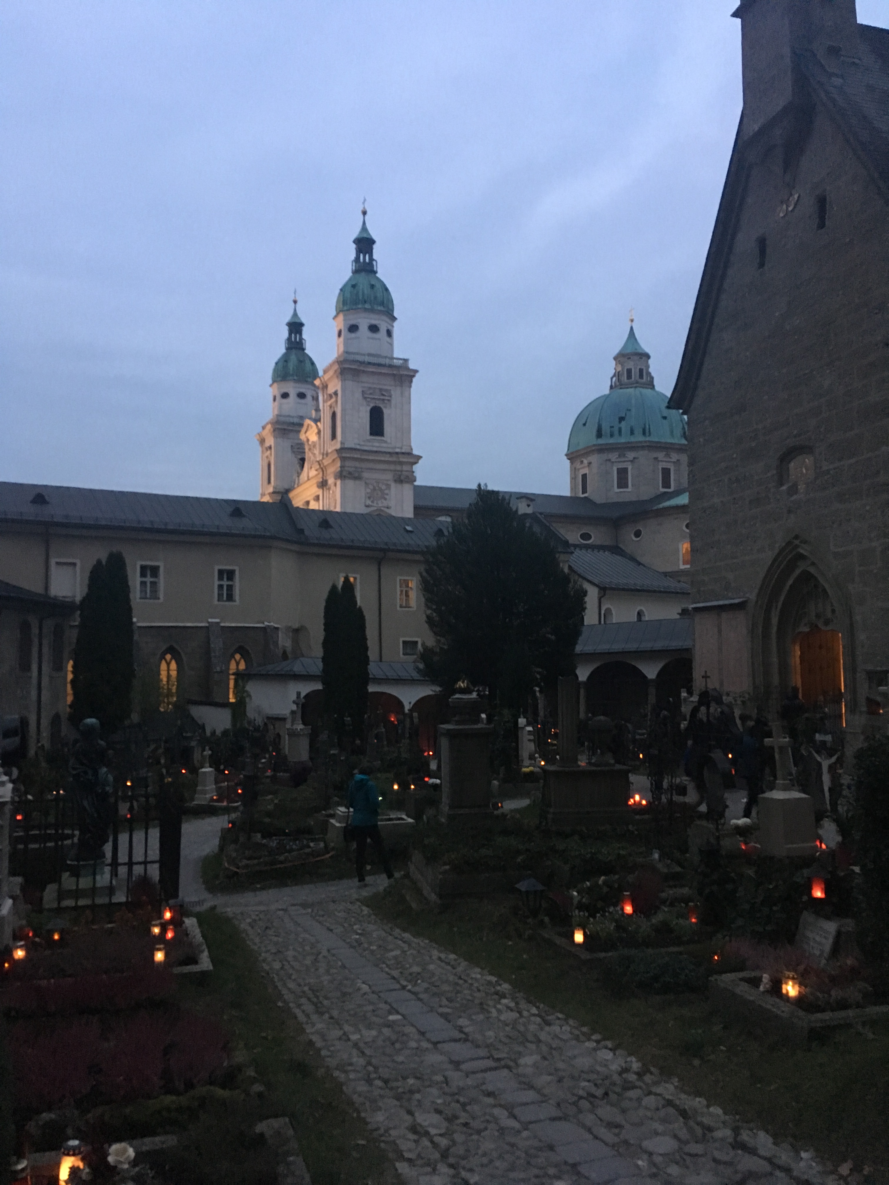 Friday took me to Salzburg, a city considerably smaller than Vienna with only about 150,000 residents. The population goes up in the summer though because this is the city of music – Mozart, the Salzburg Folk Festival, and the Sound of Music. For Austrians, who mostly aren’t familiar with the Hollywood Sound of Music, the real Von Trapp family is still a draw to this city, which is also conveniently near some ski resorts. On a sunny day, the Unterberg towers on the horizon, the first mountain of the alps. It’s a beautiful city, and I really enjoyed spending my last two days there as this was where I left the tour, especially since I got to try the Sacher Torte that had way too long a line in Vienna. The city is absolutely beautiful and thanks to a mild season this year, the autumn colors were amazing. I spent a lot of time just walking down the streets of the city, accidentally finding sites from the Sound of Music while searching for a place to have dinner. On Saturday, I took a four hour tour of the sites that aren’t in the city center, which meant a trip out of the city to where the hills are alive. The tour was also a sing-along, so that made it even better! I really loved the city, and the entire week went by way too fast. Before I knew it, I was on an incredibly long bus ride back to France, and now classes have started up again. There’s still a lot to look forward to though, so I’m not that disappointed about the break being over.