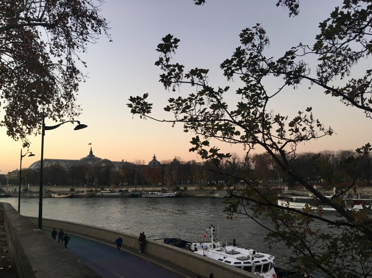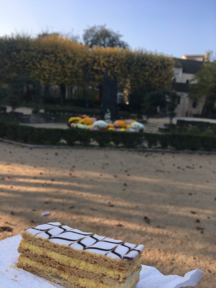 Since I didn’t have to pay for the entry to the museum, I treated myself to a stop at the café with another girl from class. The café’s location is such that you can only get in if you have the museum ticket, so going another time would have meant a 10 euro entry fee in addition to whatever I bought at the rather expensive café. Thanks to the French custom of not rushing people out of restaurants, we were able to sit there for at least an hour and a half, enjoying the weather and the gardens and just talking. Afterwards, since we hadn’t bought any of the pastries, we stopped by a donut stand at the Christmas market when we finally left. It was a great way to spend the afternoon, especially with the sunshine after a rainy week. And now, off to Geneva!