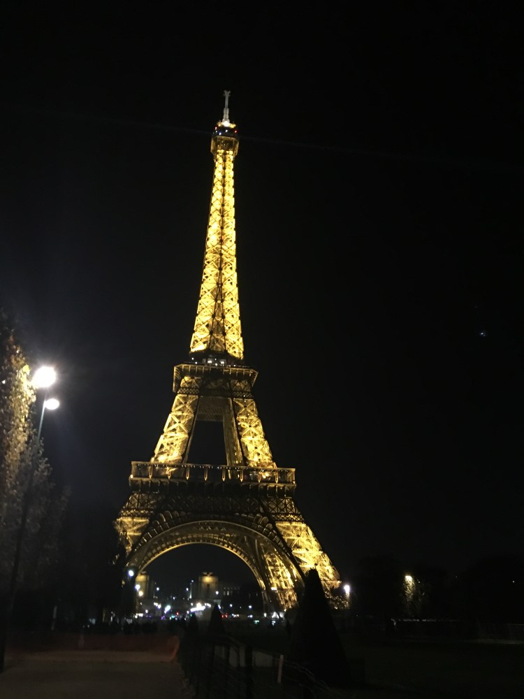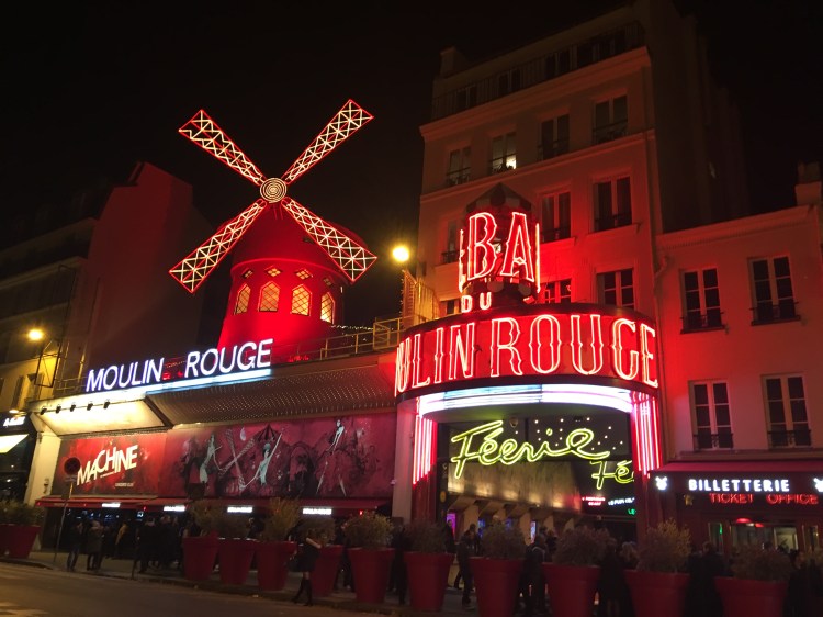 At noon, I met up with a friend at the Orsay where we almost immediately ran into some other students from our school. We got lunch together at the Orsay’s expensive but delicious café before working our way through the art. The Orsay was easily my favorite museum, and I stayed even after the others had to leave. In fact, it was after five when I left, and then it was a lot of hopping on and off the metro to see a few places I didn’t want to walk to, especially after dark. So I stopped by the Palais Garnier Opera House – the setting for Phantom of the Opera – and the Moulin Rouge – the setting for Moulin Rouge – then back to Notre Dame to buy dinner from one of the little shops by Place Saint Michel and then on to the Eiffel Tower for another picnic and some nighttime pictures. All in all an amazing couple of days. My legs may be tired, but I loved every mile.