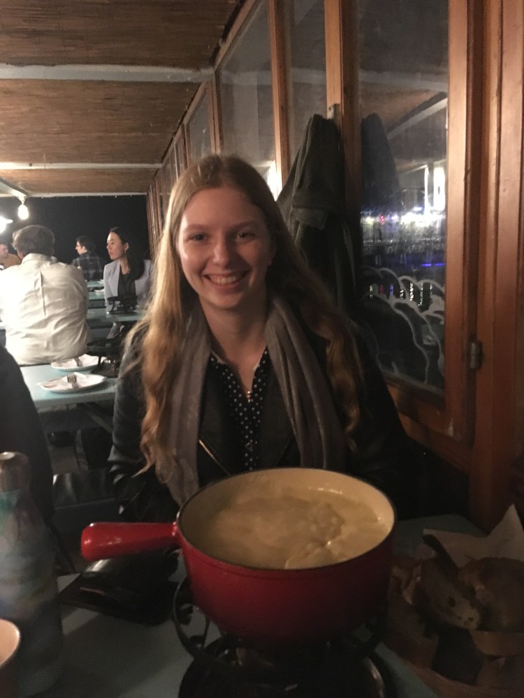 After leaving Aix around 2, we eventually arrived in Geneva sometime after 9pm. Our trains were on time, and there wasn’t much wait for those, but the last leg of the trip was by bus from Bellegarde to Geneva. With the “Gilets jaunes” (Yellow Vests, link to more information) protests still ongoing throughout France, travel can be problematic. Some people had been waiting for a bus for hours, and it was a little harrowing to get on. Fortunately the professors were able to talk to the driver and get permission for us to board as a group, so we ended up in Geneva a little later than expected but all together. The tours of various international organizations started bright an early on Monday with an 8:30 am appointment at the U.S. Mission. The goal of the Mission is to represent US interests at various international organizations, but there is no one relaying with the Swiss government (that’s in Bern). We were able to learn more about careers in the Foreign Service and had a great Q&A with the representatives who spoke to us. Pretty soon though, we were off again to the World Trade Organization (WTO). For this one, we were seated in one of the rooms used for intra-country meetings, and we got to choose country names to represent us. As in an actual meeting, we turned the signs up to speak, and it was a lot of fun. We then went to visit the Environmental Network and to eat in their cafeteria. This particular location is the local base for several groups headed by the UN but also by other organizations, and we were able to meet with several representatives to learn about the various environmental groups and their goals. And then, at long last, it was time for fondue and bed.