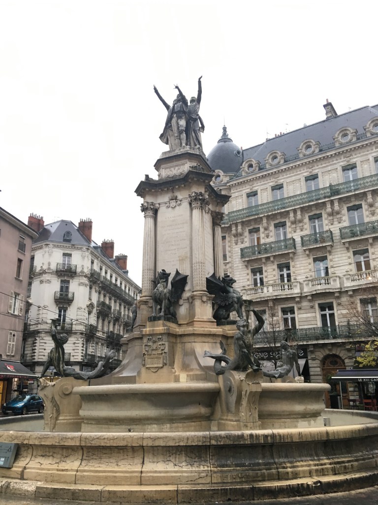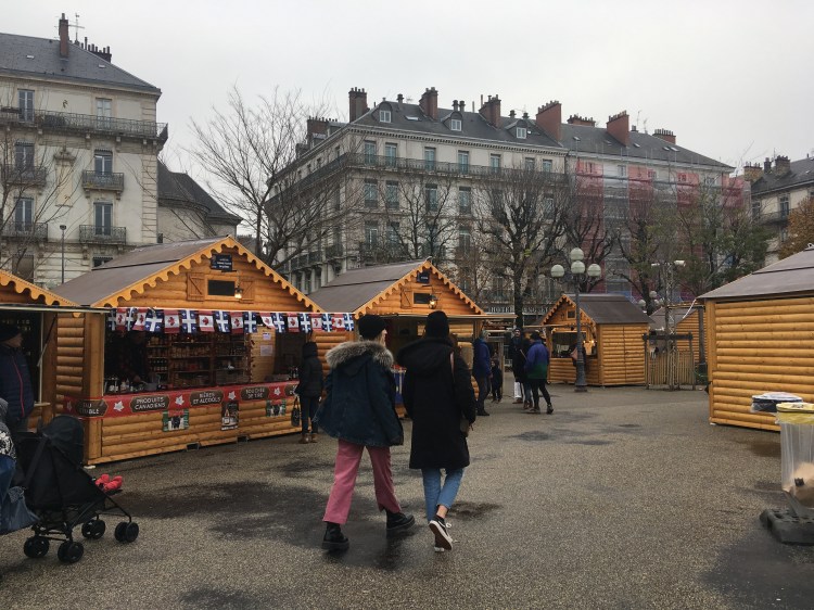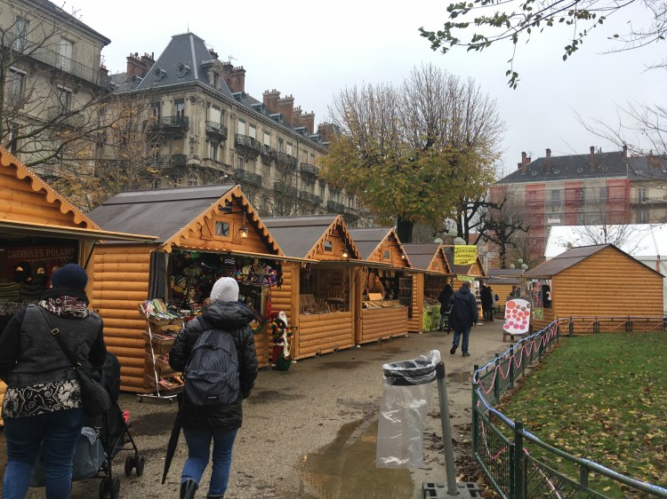 Grenoble is a French city in the Alps that also hosts a Christmas market. And it’s a more convenient trip than Strasbourg, which has one of France’s most famous Christmas markets. When I arrived in Genoble on Friday afternoon, it was very rainy and not expected to clear up until ten. I walked around a bit and took pictures, but I ended up just enjoying my hotel where I finished my big essay and ordered bœuf bourguinon from the surprisingly affordable room service menu. So not a bad night.