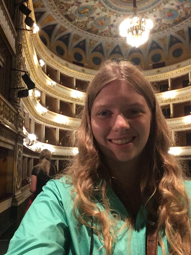 While here in Italy, I am taking two art history classes, and I’m really excited to get to see the works we’re learning about in the classes. However, you can find really cool art and architecture all across Italy. From the cathedrals to coats of arms painted on buildings, there’s a lot to see. On Wednesday, we took a walking tour of Orvieto, and my group really got to see some of that art as we went to the Opera house, inside the cathedral, and through the Orvieto underground. The Opera house was opened in 1866, and pictures really can’t do it justice. From the intricate curtain that hangs over the stage to the dance of hours painted on the theater ceiling to the busts of composers in the stairwells, the whole building is simply incredible. The cathedral also is impressive with artwork everywhere. In the Chapel of the Madonna di San Brizio, a 15th century addition, there are frescoes by Fra Angelico, who is studied in every Renaissance course, and Luca Signorelli, who is not as famous, but his work in the Orvieto cathedral is considered his masterpiece. The underground of the city didn’t have quite so much artwork, but it did take us back even further in the city’s history to Etruscan times when people dug into the rock to create tombs. Later, the underground was expanded for use as both cellars and olive oil presses. In the 20th century, it was expanded even more to use as a bomb shelter in WWII, though in fact Orvieto was almost completely left alone thanks to a German general’s appreciation for the cathedral.