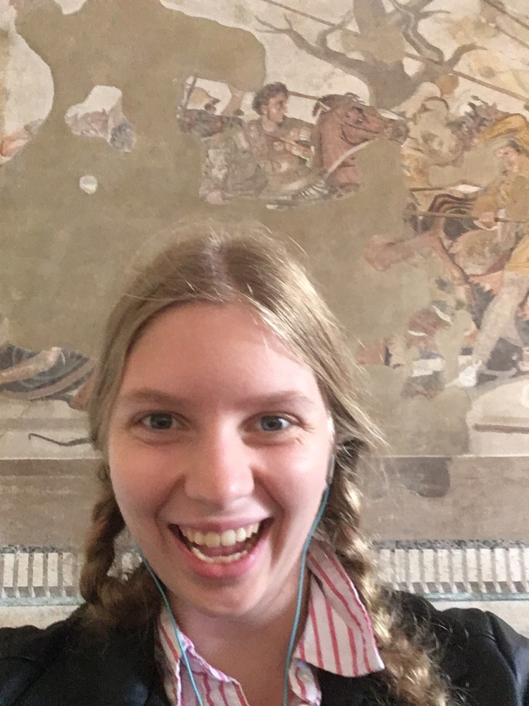 I had an absolutely amazing time seeing some of these old places. By far the most exciting part though was seeing a mosaic of Alexander the Great in the Naples museum. It was originally part of a floor in Pompeii, but I didn’t know that I would actually be able to see it, which led to a very excited selfie in front of the mosaic. After touring the museum on Friday, we spent the afternoon in the ruins of Pompeii, which, thanks to restorations and careful preservation, still very much resembles a city. There’s a song I like about Pompeii that says, “If you close your eyes, does it almost feel like nothing’s changed at all?” And, it really does. I could have spent several more hours exploring the city, but we hit the most important parts as a group (Villa of the Mysteries, House of the Faun, Amphitheater, etc.)