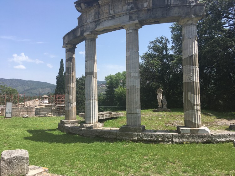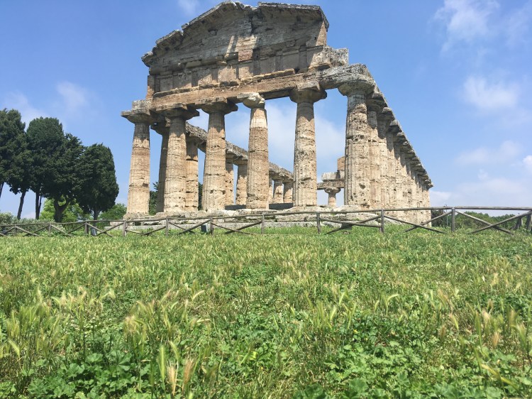 Saturday morning, we went first to a buffalo mozzarella factory where all the cheese is made with buffalo milk. We stayed there for a few hours to have lunch and pet the buffalo before moving on to Paestum (/ˈpɛs.təm/) which is home to three of the most well-preserved Greek temples in the world. They’re also really old, dating to somewhere between 600-450 BC. This is apparent in the structure since these temples have Doric columns rather than the more well-known Ionic or Corinthian ones. The Doric columns are basically wider and closer together than the later ones as the architects were still discovering how thin and how spaced out they could make them. Back in its day, the city of Paestum was part of Greater Greece before it was taken over by the Romans, which explains the Roman roads that were added. In later years, the Temple of Athena was also used as a Christian church, and, as a result, it is the best preserved temple in the world. These temples are also massive! You don’t realize in pictures how big they are, but standing in front of them, it’s pretty clear that these were massive building projects.