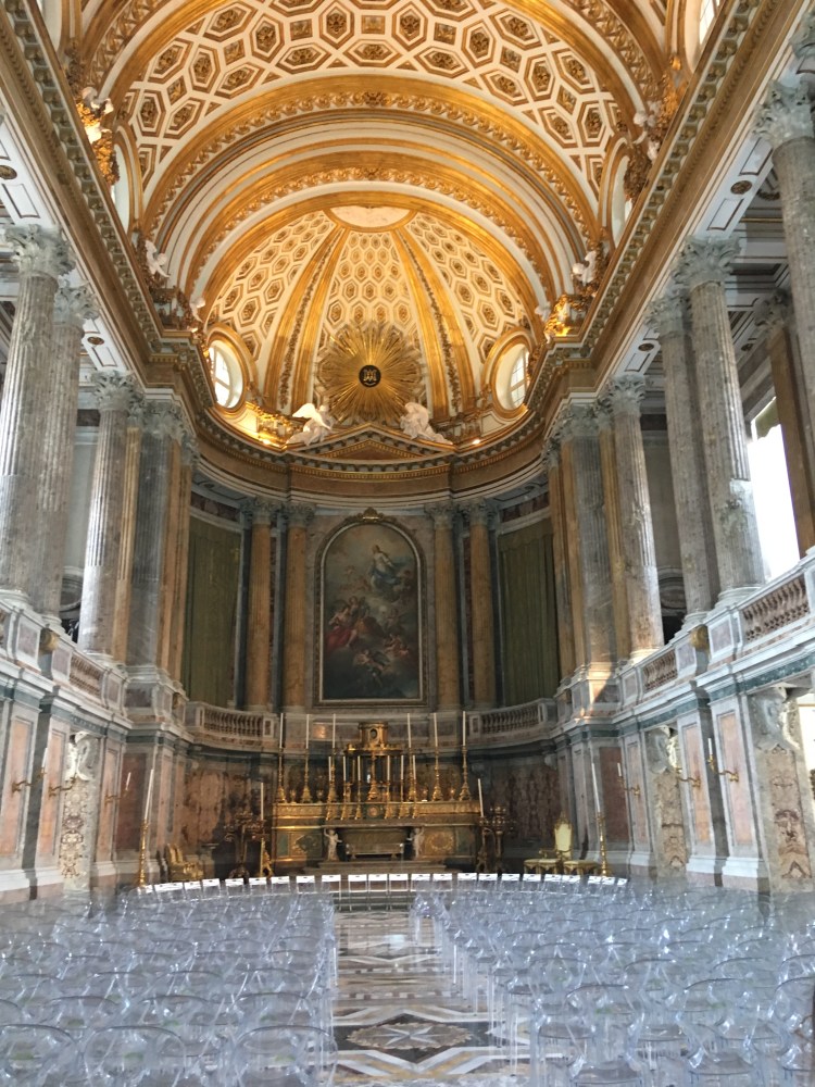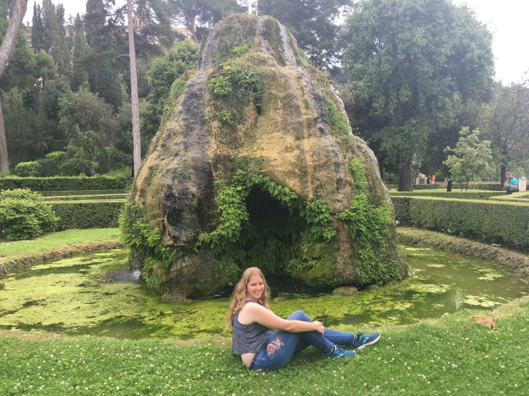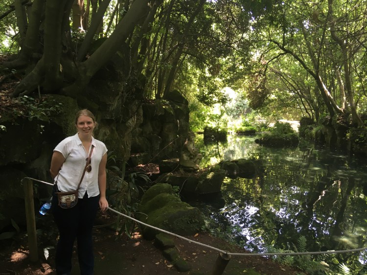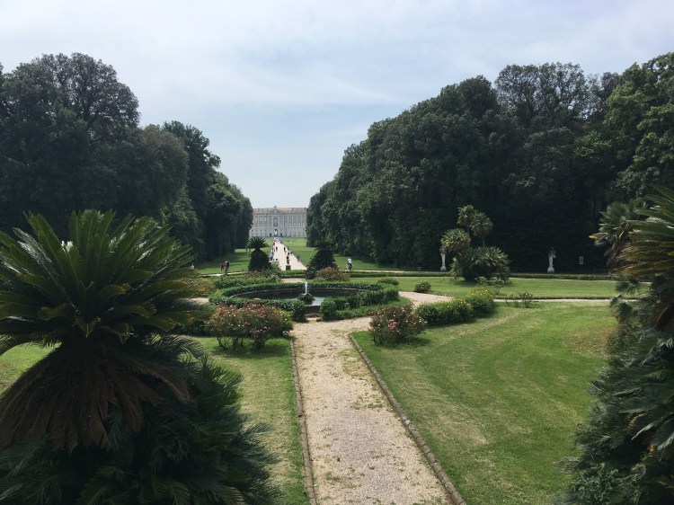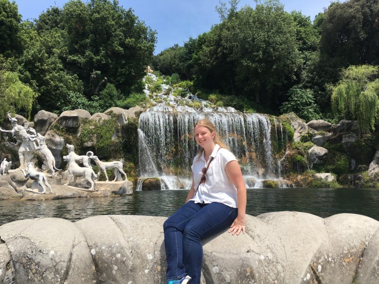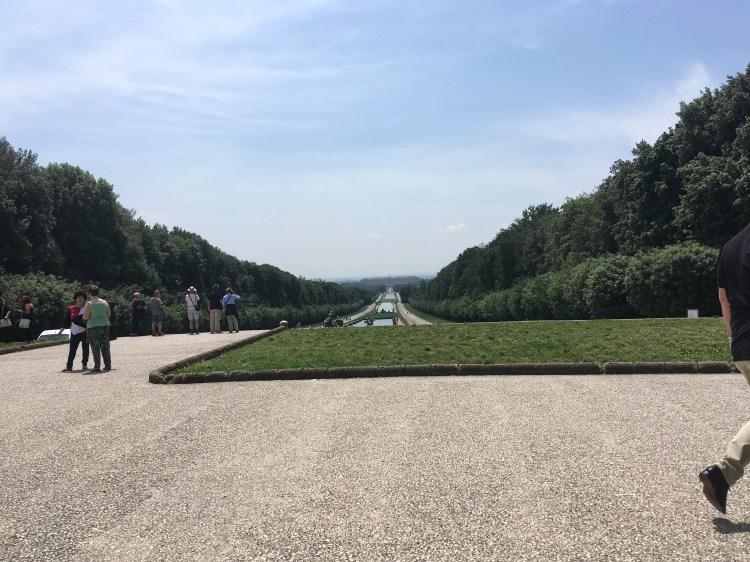 After a trip to the museum and some gelato, we retired to our hotel, which was only a five-minute walk from the beach, so naturally, everyone went to the beach to swim in the Mediterranean. The dinner that night was also spectacular, and really the whole day was fantastic. Finally, on Sunday, we went to Caserta. Today Caserta is the capital of the Province but way back when it was a residence for the Bourbon King of Naples. The building is essentially the epitome of the Baroque and is also one of the largest palaces constructed during the 18th century. Including the gardens, it is considered the largest royal residence in the entire world. And the gardens are definitely the best part of it (despite the 1200 interior rooms). The palace is dwarfed by the extent of its gardens, and it takes about an hour to walk out to the end. Once you reach the end point though with its beautiful waterfalls, you’ve also reached the expansive English Gardens that probably deserve a day to explore on their own. I didn’t get to see as much as I would have liked, but it was a beautiful day and perfect for posing for a lot of pictures.