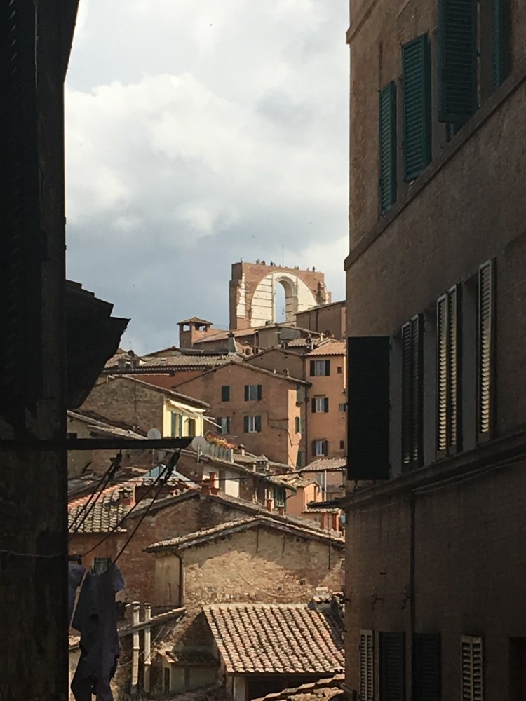 The cathedral in Siena is absolutely spectacular. It was built at the same time Florence was building its cathedral, and the two cities were actually in competition for who could build the best one. At one point, construction on Siena’s cathedral stopped because they realized the Florence one would be bigger and started making a different one. All that was built of this was one arch of the façade. Had the cathedral been built, it would have been a skyscraper, but in my opinion, it’s almost better that they only built the one arch. Now, Siena’s original cathedral has the spotlight, and one hundred tiny spiral stairs up the arch take you to the best view in the city. Siena’s clocktower may be higher, but it’s also four hundred stairs to the top (they built the clocktower from the lowest point in the city).