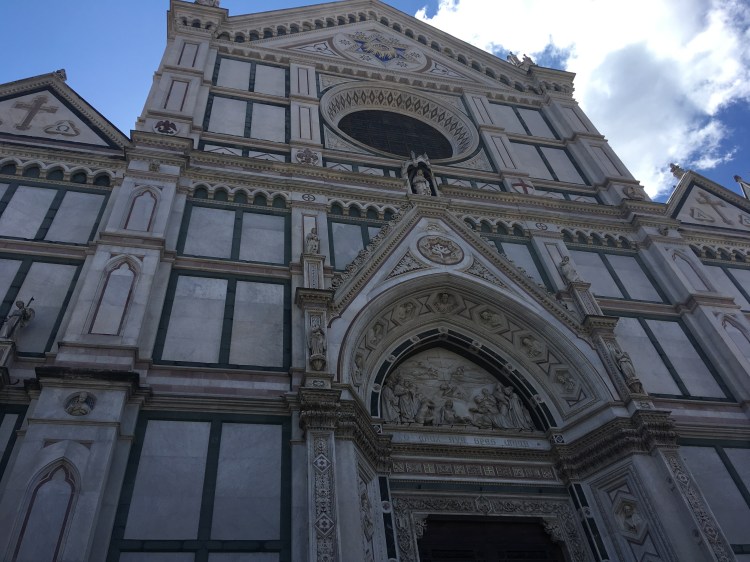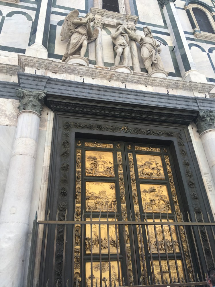 Finally, we walked to Florence’s most famous building, the cathedral – Mary of the Flowers. Florence is symbolized by lilies, so in the Italo-Byzantine façade, you can see both the red lilies of Florence and the white lilies of Mary. The baptistery in front of the cathedral is a few hundred years older than the rest of it, and is actually dedicated to John the Baptist. It was built along with an older cathedral that was torn down for this one to be built in its place, though the famous dome built by Brunelleschi was constructed 43 years after the rest of the Church was finished. We didn’t go in the church unfortunately because of the long line, but walking through Florence is absolutely amazing since many of it’s famous sites are all outside. On the way back to the bus, we saw Dante’s house, which was pretty cool too. Florence really just feels like a bigger Siena with lots of little streets, nice people, and good food. It’s a place I would love to visit again.