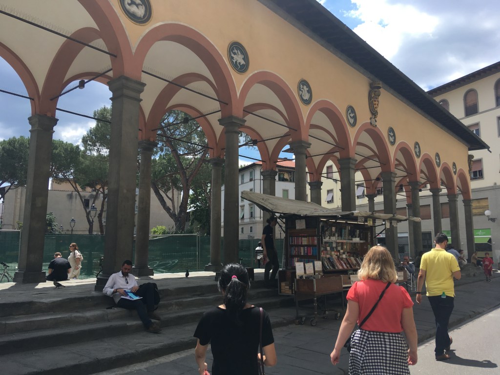 For lunch, I went with some of my friends to a food market to look around but not finding anything we wanted, we ended up instead a trendy bar down the street. We didn’t actually know this before going in; they just seemed to have good prices and we were hungry. Outside was a little bookshop, so we stopped there before heading back for gelato and a stop by the tourist stands to buy souvenirs. I didn’t get any leather here, but just walking through the market smelled really good. Completely by accident, we came across Orsanmichele, a building once dedicated to the guilds of Florence that is home to one of Donatello’s most famous statues. Naturally I dragged my group around the back of the building to see it, though I had to explain what we were looking at.