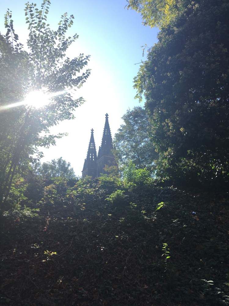 Not wanting to brave the crowds at Prague Castle at their peak, we spent Friday walking down the river to the Vyšehrad, a 10th century fortress said to be the first settlement of the city. One of the most iconic sites here is the Neo-Gothic Basilica of Peter and Paul, but also in the complex are the Romanesque Rotunda of St. Martin and Vyšehrad Cemetary. The only historical figure I knew of there was the artist Alphonse Mucha, but the statues lining the cemetery are marvelous works of art themselves – and I learned that rodina is not actually the most popular Czech name but the Czech word for family. After a bit more walking, we had dinner at a wonderful Czech place called Lokal that I would highly recommend (though I would also recommend a reservation).