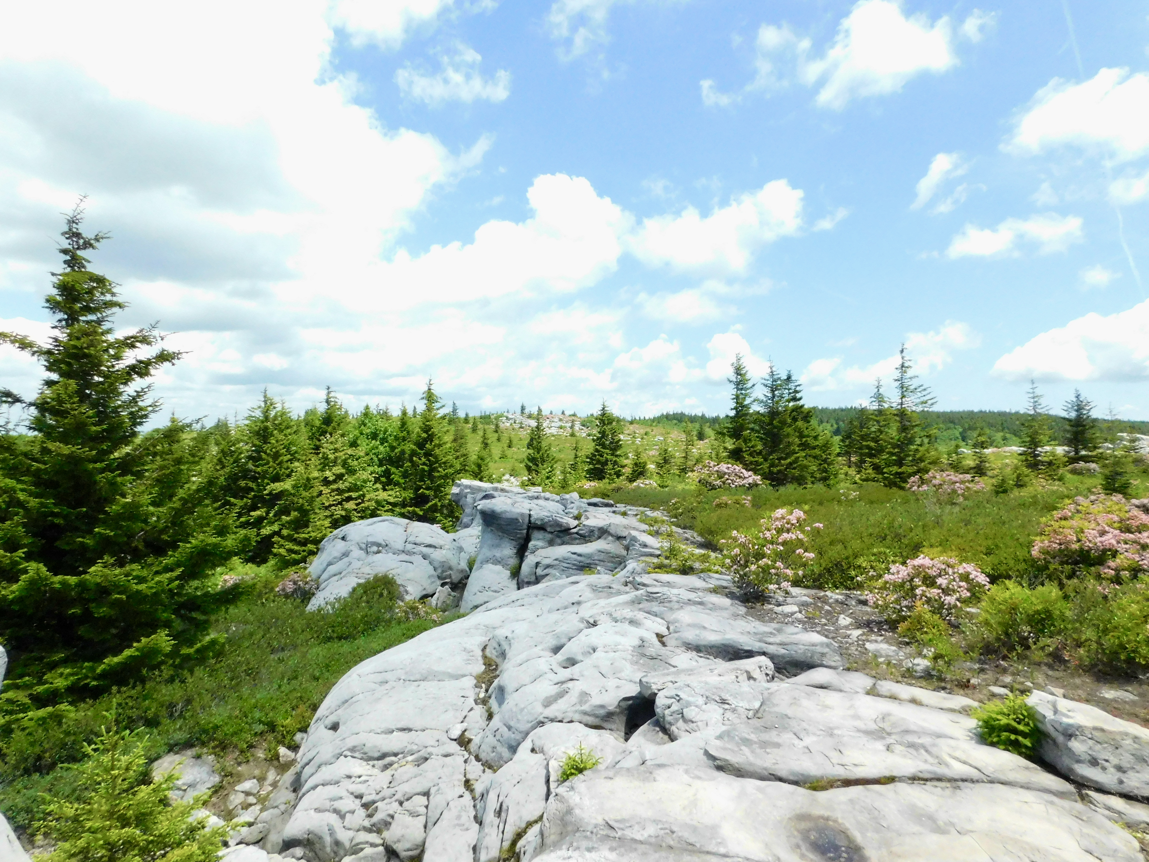 Dolly Sods Wilderness has a variety of plant life at the varying elevations, but, for me, the iconic Dolly Sods plants have always been the red spruce trees that only grow on one side because of how strong the wind is from the other direction (this is mainly visible near Bear Rocks). Of course now, after going backpacking and seeing more of the area, I will also think of the rhododendrons, mountain laurel, and blueberry bushes that bracketed the trails. The name “Dolly Sods” comes from the grassy fields, which were called sods and were used by the Dalhe family for grazing in the 1800s. In the 20th century, the military used Dolly Sods for training maneuvers and artillery practice. Leftover shells along the trails were tracked down and exploded in 1997, but there are likely more in areas that are more difficult to access, so that’s a good reason to stay on the trails. Ultimately, Dolly Sods Wilderness was established in 1975 and today includes almost 18,000 acres of land managed by the US Forest Service.