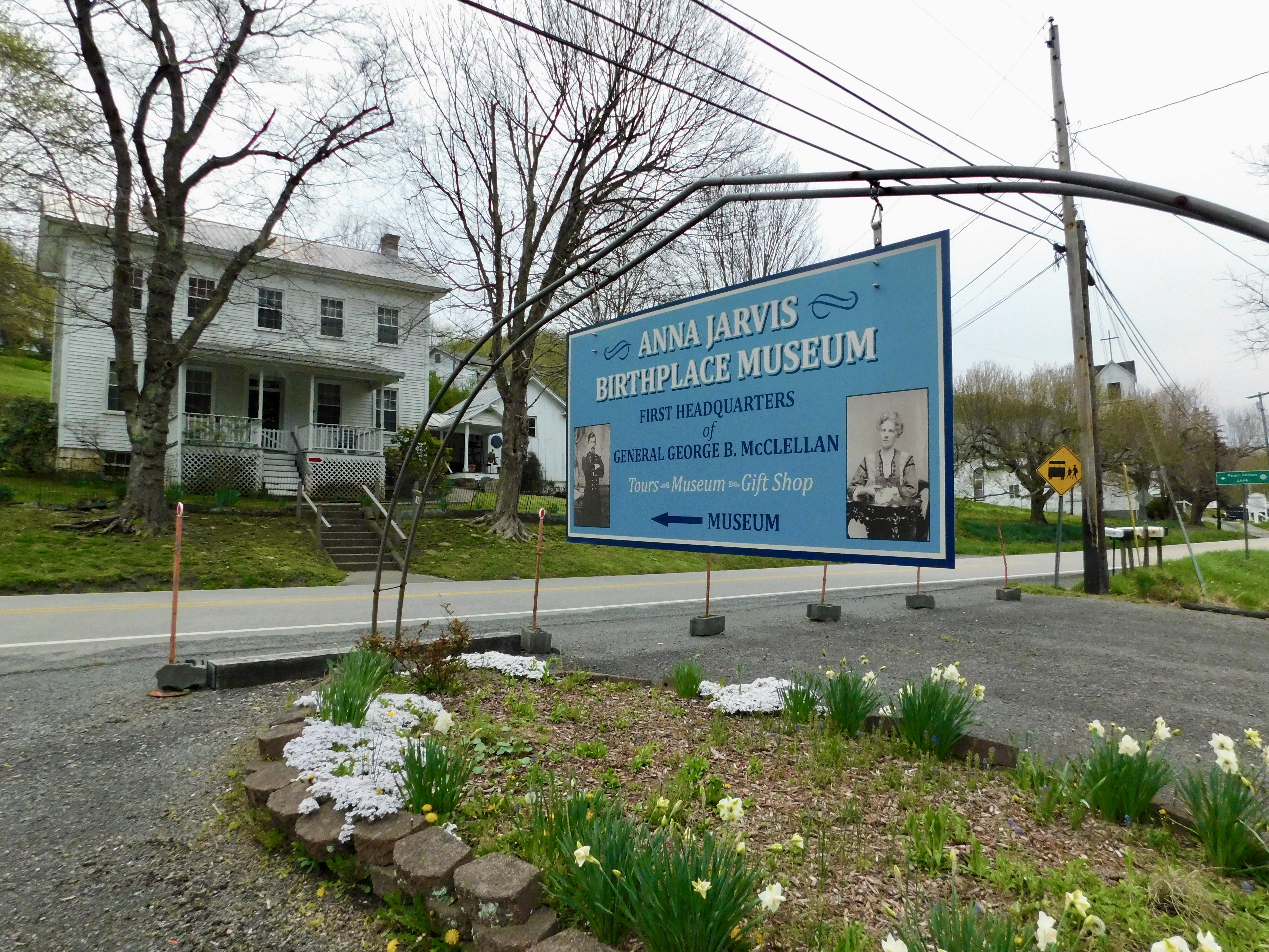 The Anna Jarvis Birthplace Museum was one of my main destinations in the Grafton area. Anna Jarvis was born in 1864 and died in 1948. She is most famous as the founder of Mother’s Day, a holiday which she believed should give mothers a day off to recognize the hard work that they do in caring for their families. Anna’s own mother, Ann, was an important woman in her family and community and is credited as the inspiration for Anna’s crusade to create Mother’s Day. The holiday was first celebrated in 1908, three years after the death of Anna Jarvis’s mother. As the holiday became more widely celebrated and commercialized, however, Anna pulled away from her creation and even advocated for people to stop celebrating what she saw as a perversion of her original idea. She eventually died in a sanatorium and was buried with her mother and siblings.